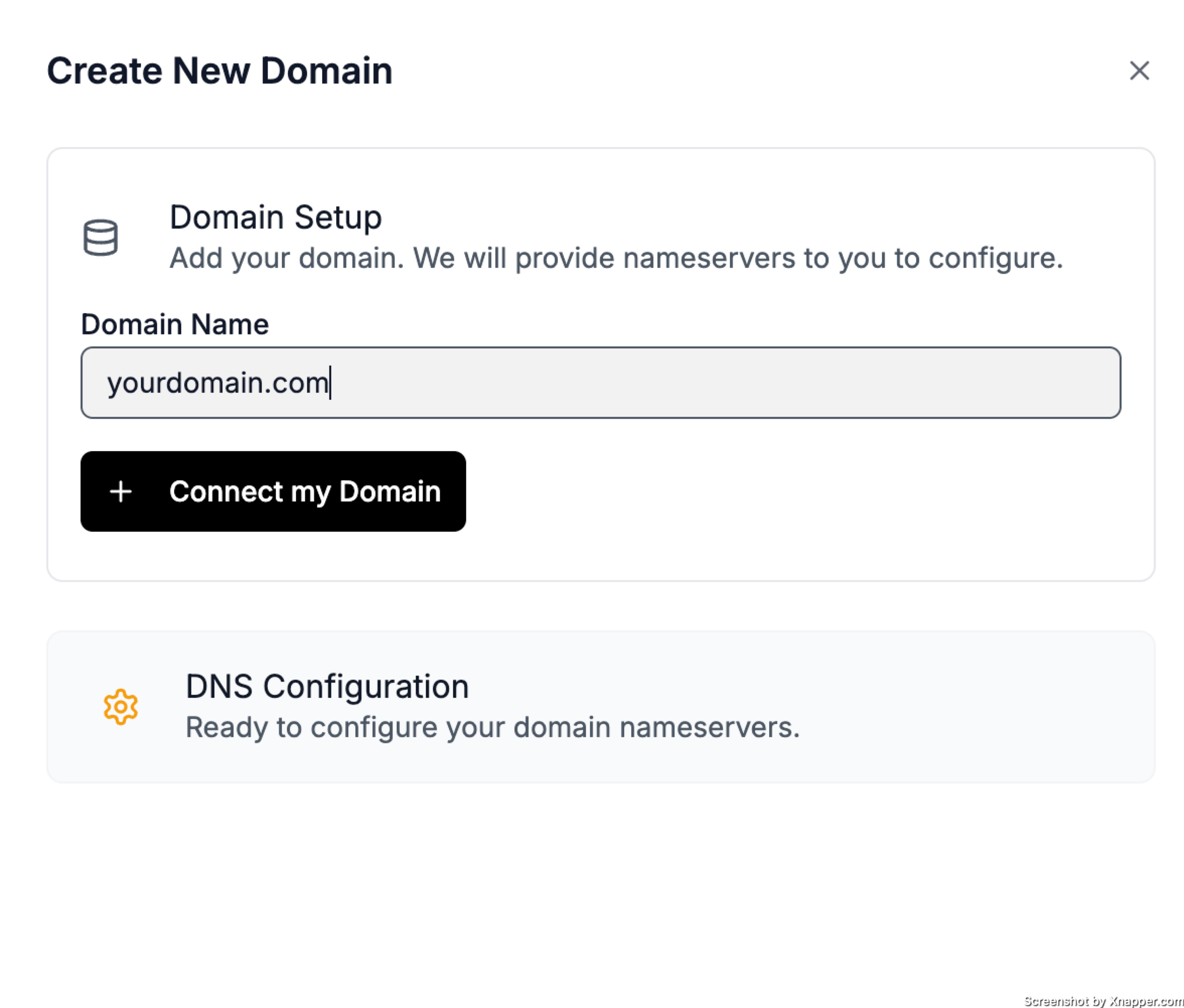 In the left menu click Domains → Create new domain (Note: You have to be subscribed to a plan to do this step)